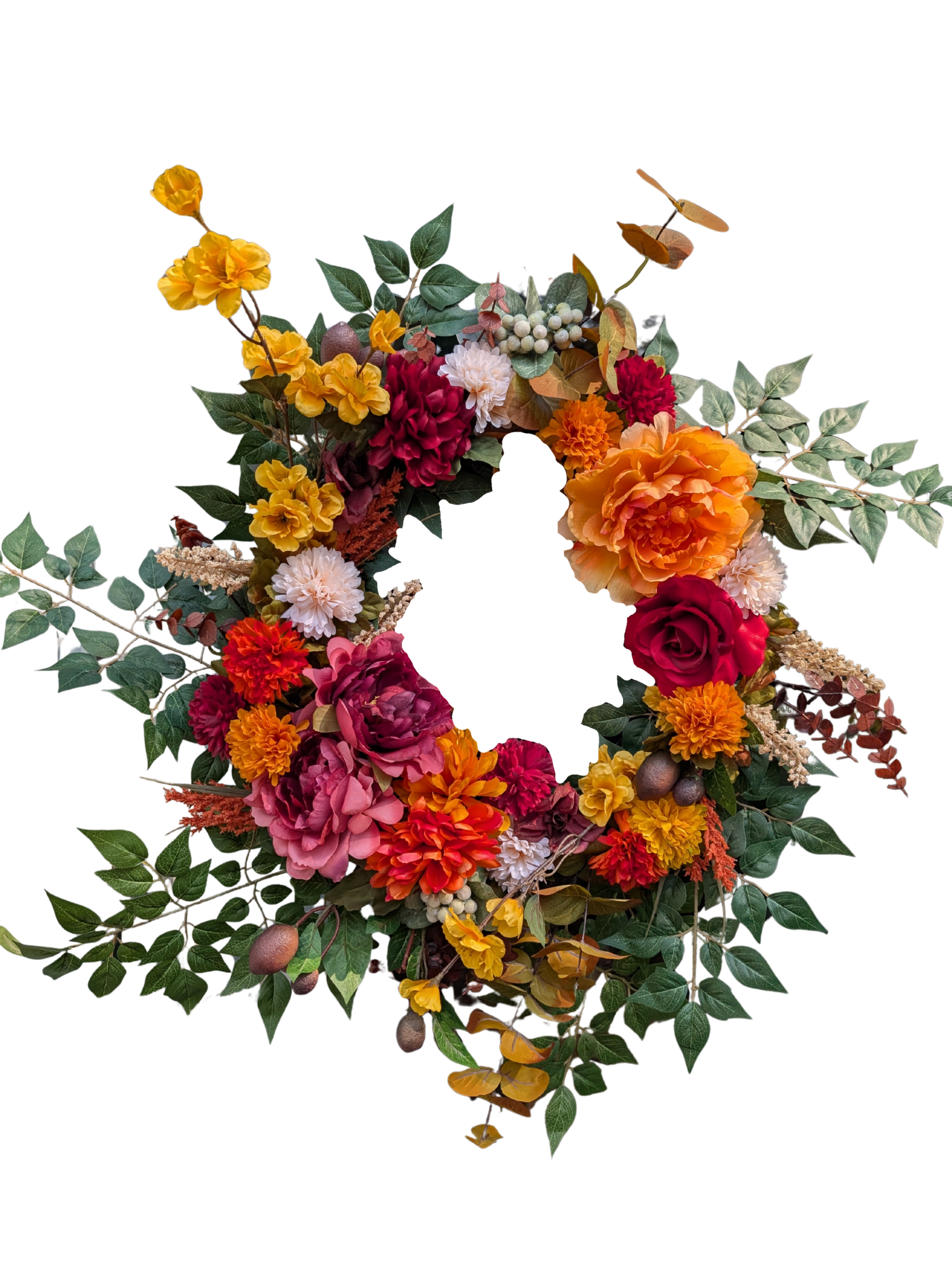 I absolutely love when customers come to me with custom requests. While florals are often my go-to, I get so much joy from branching out into new styles, colors, and materials to bring your vision to life. Every home has its own personality, and I take pride in creating one-of-a-kind wreaths that reflect yours. Whether you’re looking for something timeless and elegant or bold and unexpected, together we can design a piece that illuminates your unique décor and makes your entryway truly unforgettable.